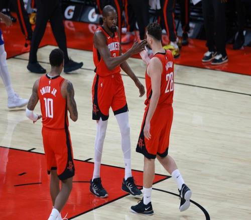 两队下半场开启巅峰搏斗,火箭双塔联防,夹击亚历山大赌其他人终结效率。